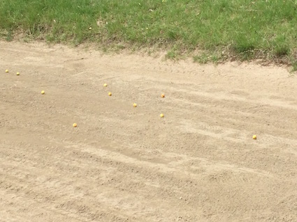 これはトップか、、これはシャンクか、、、ヒールやネックに当たった時なんかなんていうときでもそこそこのところに飛んでいくことが多い、、、、